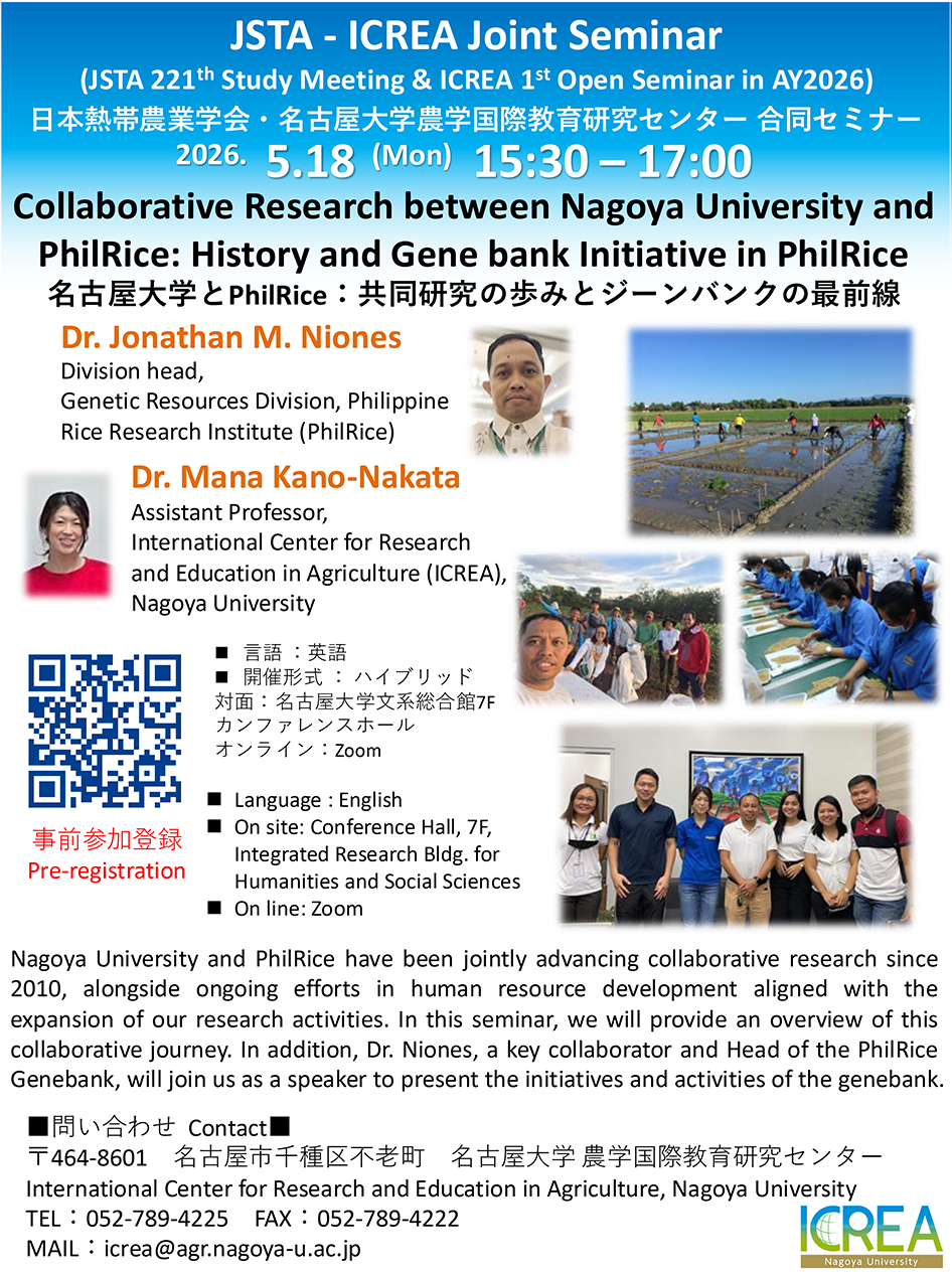 対面(名古屋大学農学部 第2講義室) & オンライン(Zoom) |